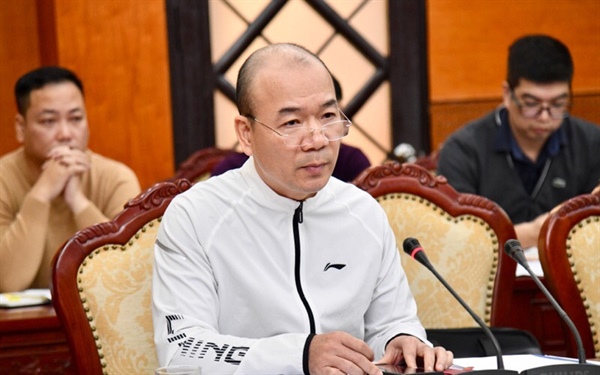 Ông Hoàng Quốc Vinh - Trưởng phòng thể thao thành tích cao 1 báo cáo về công tác chuẩn bị (Ảnh: Văn Duy)