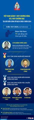 Tại Giải Bắn súng Vô địch châu Á năm 2024 diễn ra tại Indonesia từ ngày 5 - 18/1/2024, đoàn Việt Nam đã kết thúc các nội dung thi đấu và giành được 1 Huy chương Vàng và 2 Huy chương Bạc.