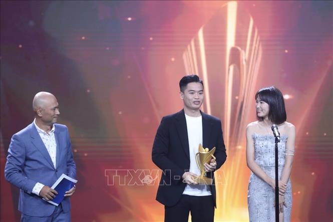 Ban tổ chức trao Cup Chiến thắng, hạng mục Nam VĐV của năm cho VĐV bắn súng Phạm Quang Huy. Ảnh: Minh Quyết/TTXVN