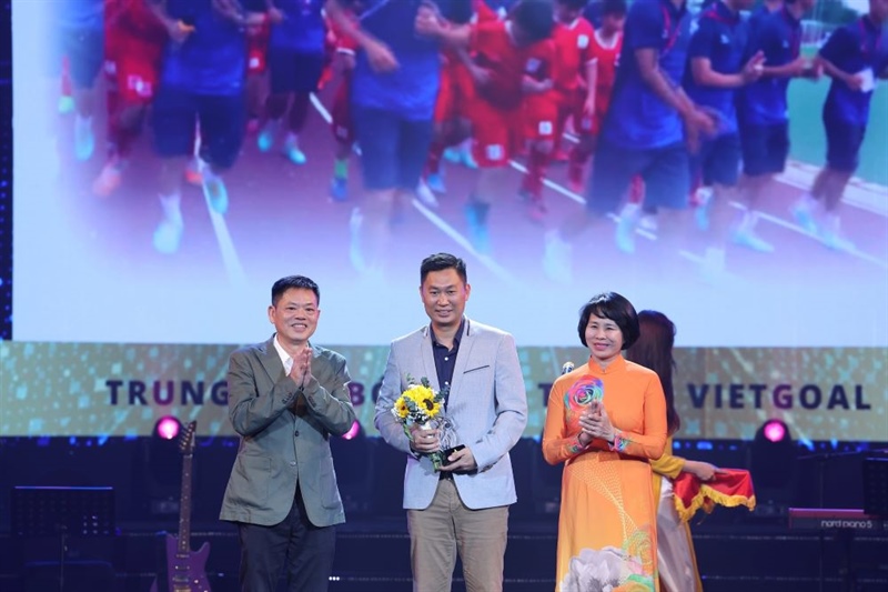 Bà Lê Thị Hoàng Yến - Phó Cục trưởng Cục TDTT và Nhà báo Trần Việt Dũng - Phó Tổng biên tập Báo Thể thao và Văn hóa/ Thông tấn xã Việt Nam công bố và trao giải thưởng “Khát vọng cống hiến”