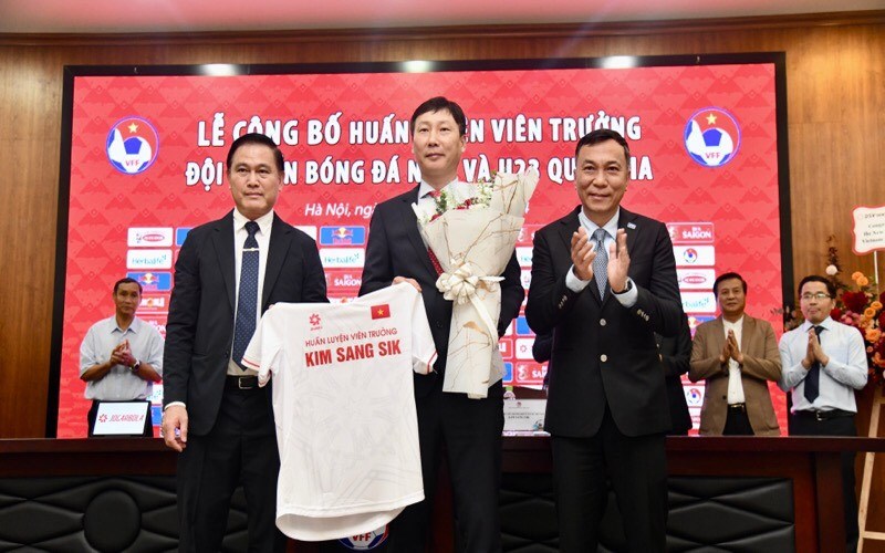 "VFF tin tưởng với trình độ và năng lực đã được khẳng định tại các giải đấu đỉnh cao, khát vọng và những thành tích đã đạt được trong sự nghiệp HLV, HLV Kim Sang Sik sẽ xây dựng lối chơi hiệu quả để đội tuyển Việt Nam thi đấu đạt thành tích tốt. VFF cam kết sẽ hỗ trợ, tạo điều kiện thuận lợi cho ông Kim Sang Sik trong quá trình dẫn dắt 2 đội tuyển", Phó Chủ tịch VFF Trần Anh Tú phát biểu.