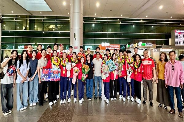 Các thành viên đội tuyển Taekwondo tham dự SEA Games 33 được chào đón tại sân bay Tân Sơn Nhất